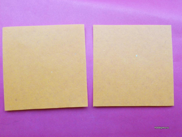 Шаг 1. Из цветной бумаги любого цвета вырежьте два одинаковых квадрата.