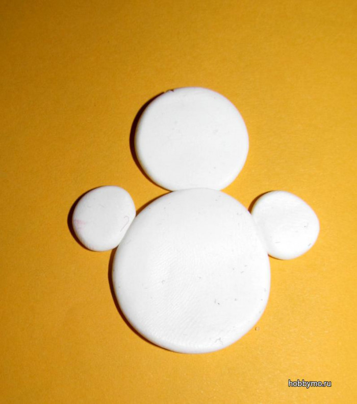 Шаг 1. Слепите из белой глины четыре шарика, как на фотографии.